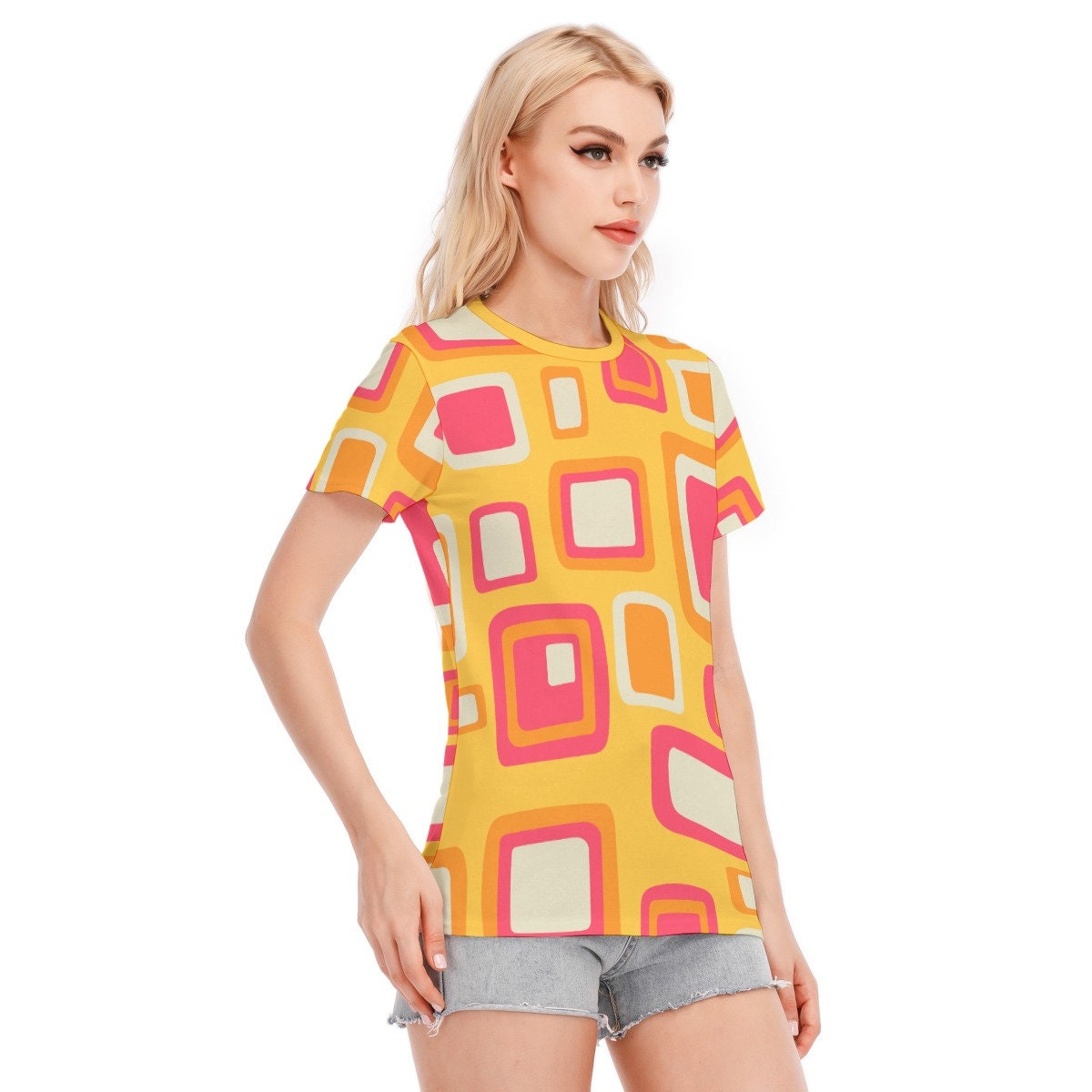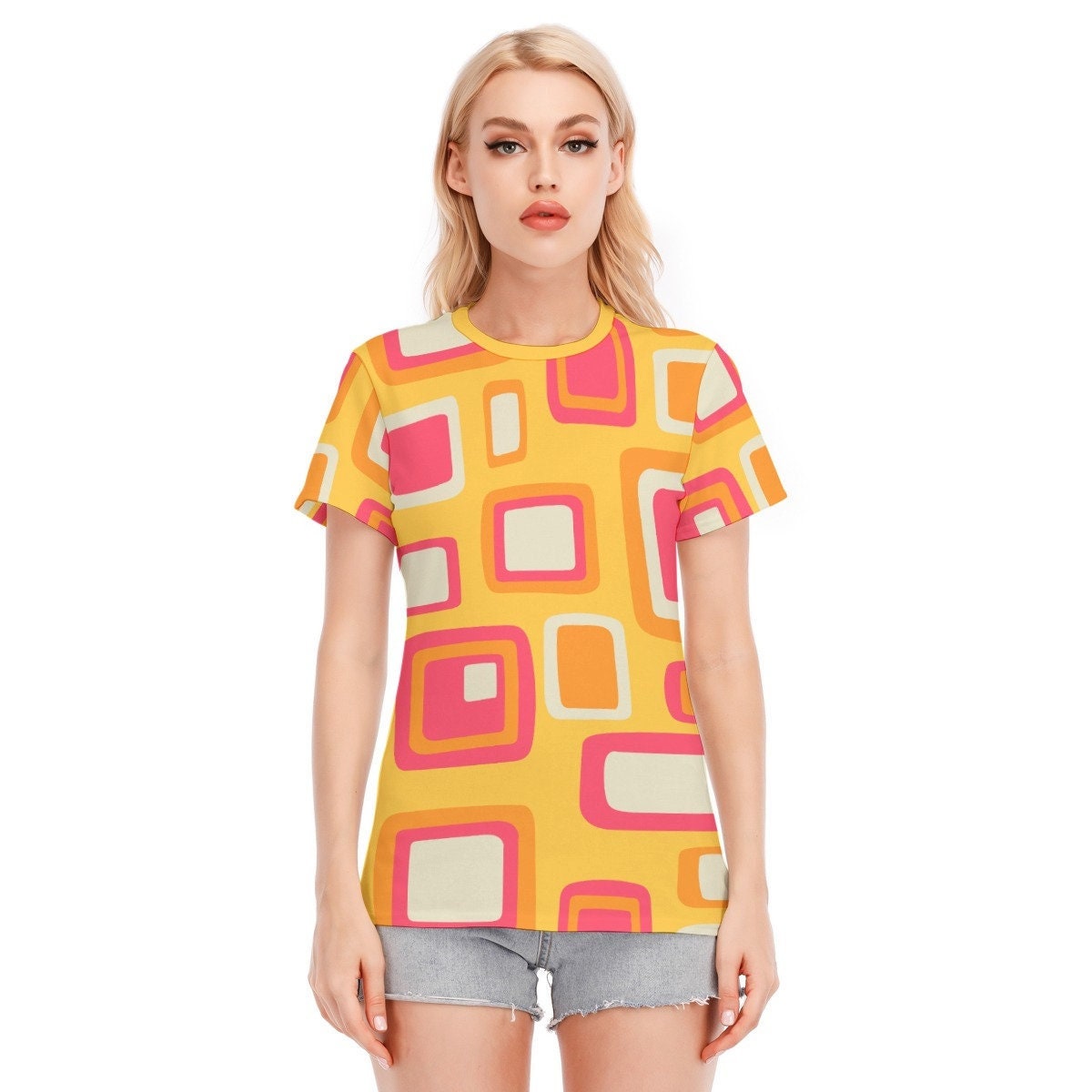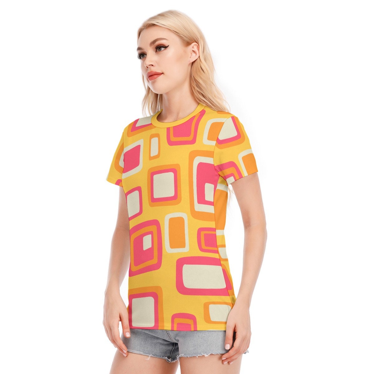 Retro T-shirt, Mod top, Womens Tshirts, 60s style top, Vintage style Tshirt, Retro Top, Womens Tops, 60s Mod Top, Yellow Mod, Geometric Top