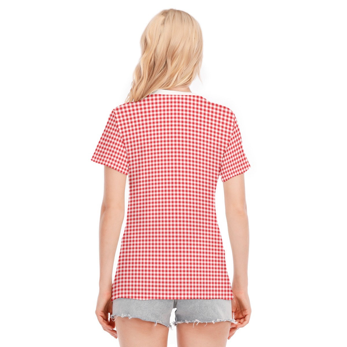 Retro Top, Retro Tshirt, Red Gingham Top, Red Tshirt, Womens Tshirts, Vintage style top, Vintage top, Vintage gingham top, Red retro top