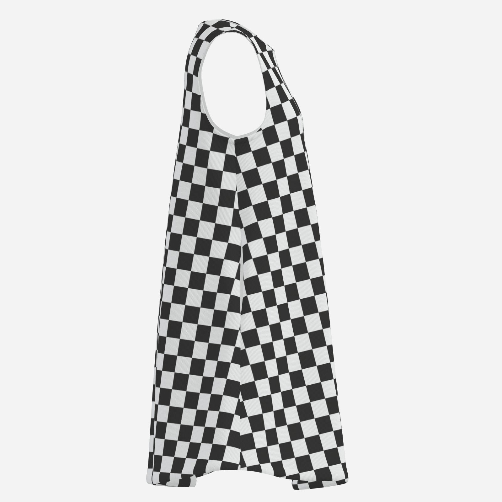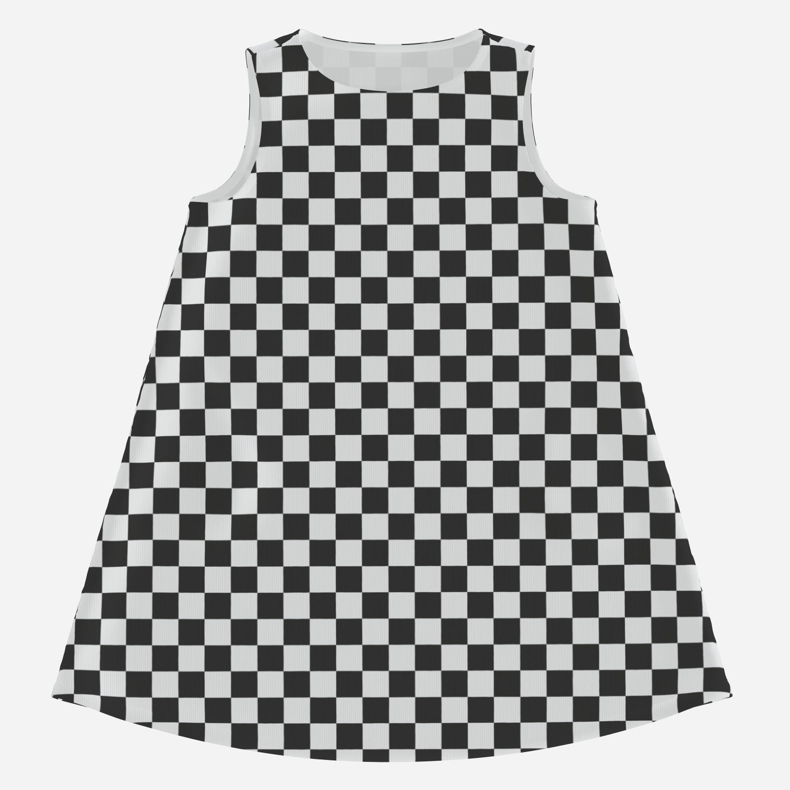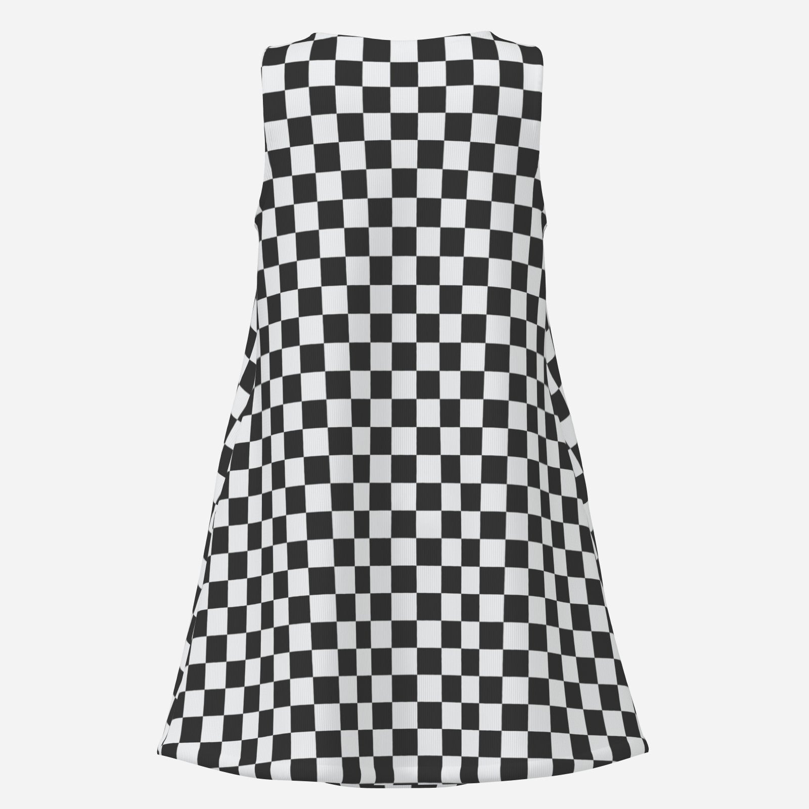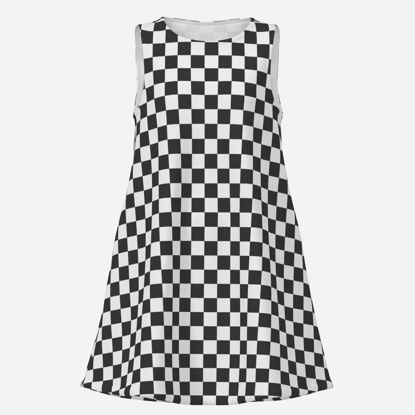 Retro Black & White Checker Mini Dress | 60s Mod Sleeveless Tent Dress